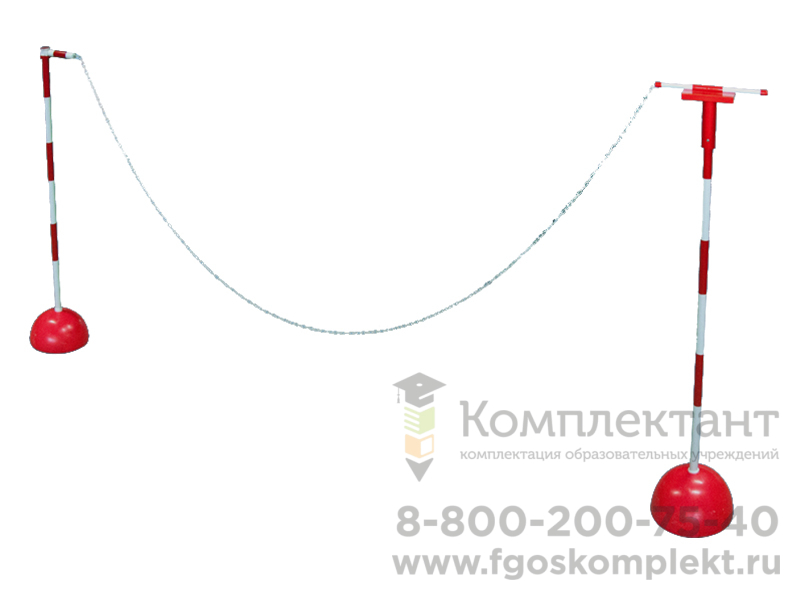 В качестве препятствия используются две стойки на основании – центральная и крайняя, расстояние между которыми – 1000 мм. К верхней части центральной стойки прикреплен один конец цепи, а второй — к торцу жезла.