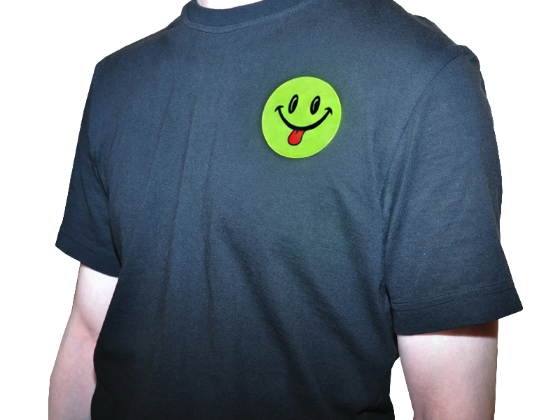 Световозвращающие наклейки представляют собой плоские фигурки в форме круга с рисунком в виде улыбки и световозвращающим покрытием желтого цвета, которые можно клеить на одежду, сумки и другие предметы. Наклейки размещены на листе формата А5.