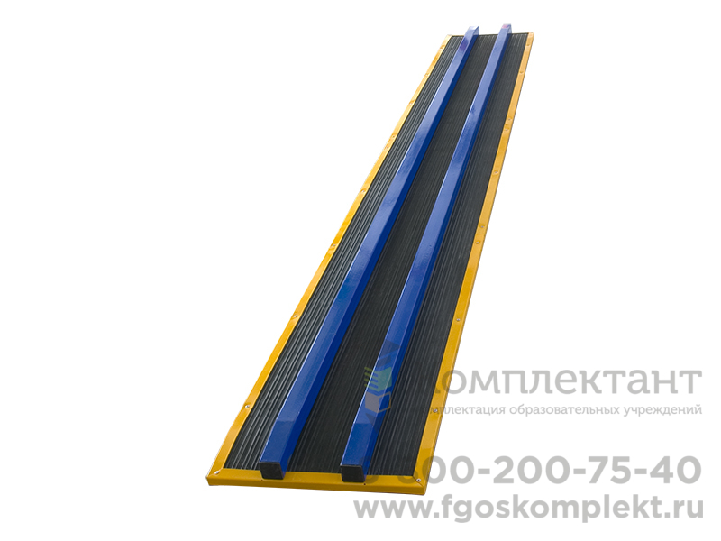 В качестве препятствия используется конструкция желобообразной формы, вдоль которой располагаются ограничительные рейки синего цвета, преграждающие боковой выезд.