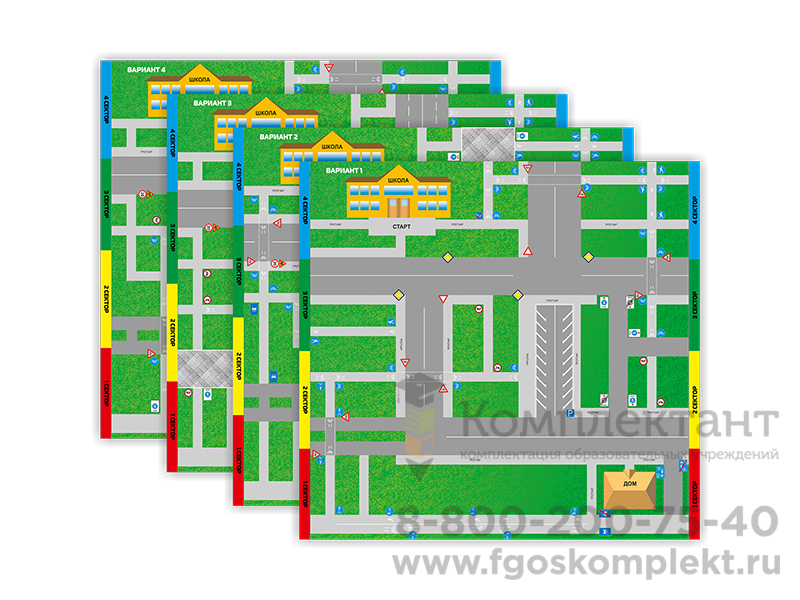 К магнитно-маркерной доске прилагается комплект маркерных фрагментов-заданий с изображенной схемой дорог и дорожными знаками, которые помогают моделировать различные ситуации на дороге для наглядной демонстрации и проверки знаний правил дорожного движения и основ безопасного поведения на дороге.