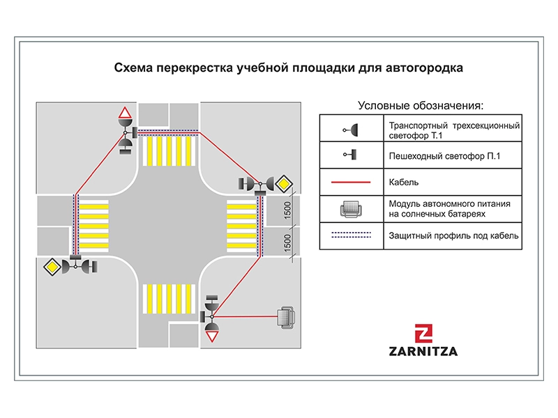 - Имеется возможность, в зависимости от пожеланий заказчика и комплектации, предусмотреть уличное освещение площадки автогородка в составе перекрестка.