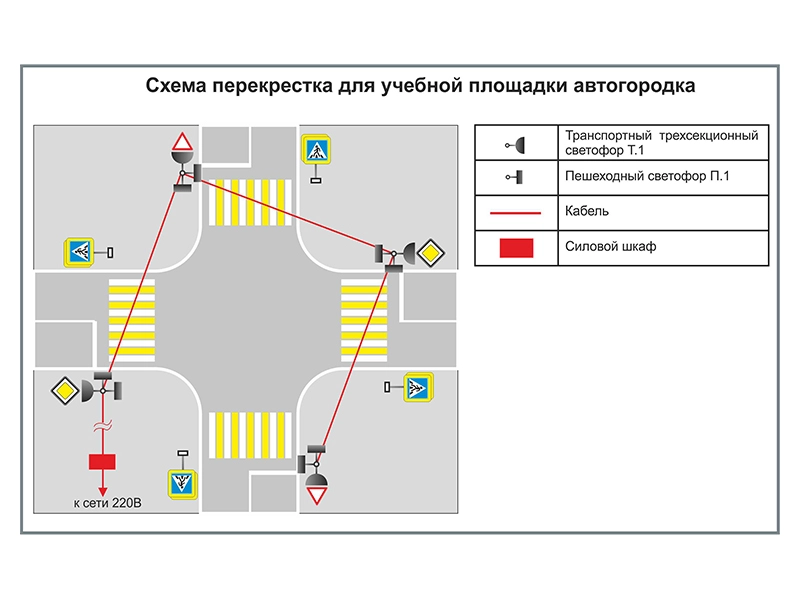 Учебные площадки со стационарным оборудованием предназначены для обучения учащихся дошкольных и школьных общеобразовательных учреждений навыкам безопасного поведения на дорогах, с использованием методических рекомендаций по изучению правил дорожного движения. Учебная площадка располагается на асфальтированной поверхности площадью от 100 м2 и оборудуется электрифицированными светофорами. Возможна установка нескольких учебных площадок (перекрестков) на одной территории с их объединением в общую дорожную инфраструктуру. Оборудование учебной площадки (светофоры, дорожные знаки) устанавливается на бетонированные фундаменты, а электропитание светофоров осуществляется от стационарного источника.