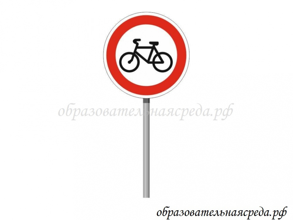 Знак ПДД "Движение на велосипедах запрещено" выполнен из прочного пластика на ноге из профильной окрашенной трубы.