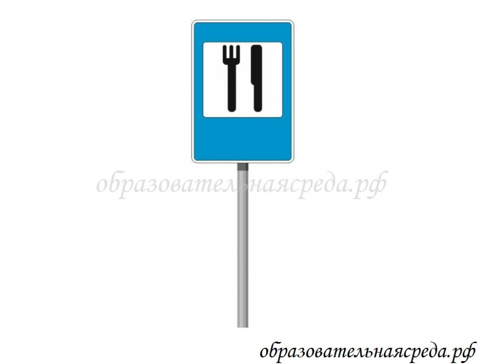 Знак ПДД "Пункт питания" информирует участников дорожного движения о наличии точек питания на маршруте. Удобное решение для организации массовых мероприятий и повышения комфорта водителей.