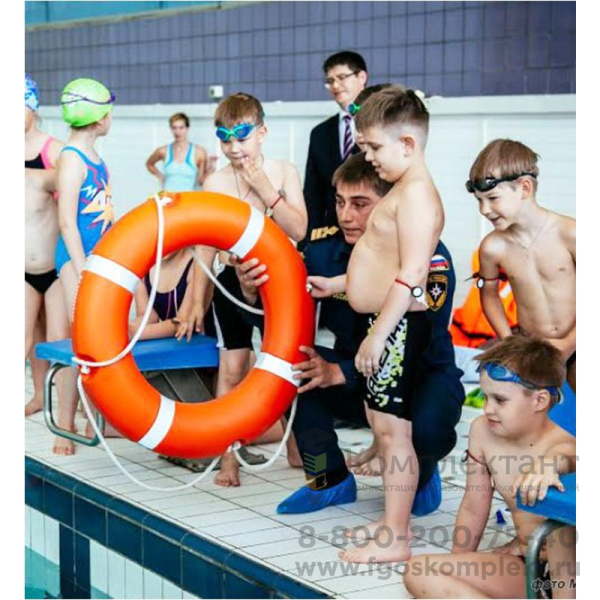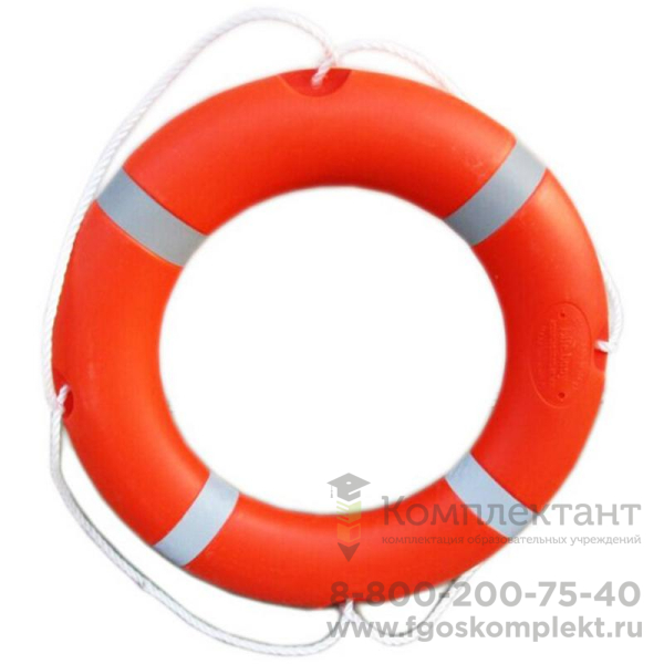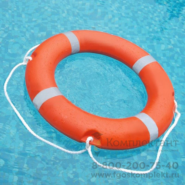 Спасательный круг - индивидуальное спасательное средство для оказания помощи человеку. Круг изготовлен из пластика оранжевого цвета. Оснащён леером. По сторонам нанесены полосы контрастного цвета. Внутренний диаметр 45 см, внешний 75 см. Вес 1,6 кг. Согласно рекомендованным нормам количества табельного инвентаря, на бассейн длиной 50 м необходимо 6 шт., для бассейна 25 м - 4 шт., для дошкольных образовательных учреждений, согласно СанПиН 2.4.1.1249-03, требуется 2 шт.