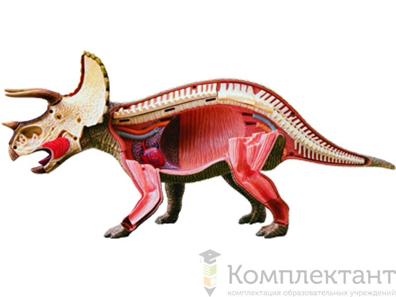 Анатомическая модель 4D Vision «Трицератопс» (Deluxe) — это современный образовательный инструмент для глубокого изучения палеонтологии и анатомии доисторических рептилий. Модель обеспечивает высочайшую научную точность воспроизведения внутреннего и внешнего строения одного из самых узнаваемых растительноядных динозавров. Данное учебное пособие предназначено для оснащения кабинетов биологии, предоставляя уникальную возможность детально изучить анатомические особенности трицератопса.