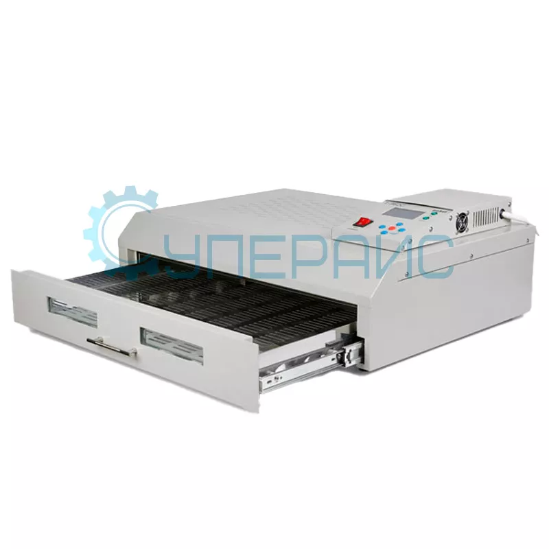 Модель выходит на режим во временном интервале от одной до восьми минут. Инфракрасно-конвекционный тип нагрева способствует равномерной температурной обработке плат и компонентов, а также обеспечивает безопасность и энергоэффективность. Функции устройства полезны для большого списка электронных производств: небольших, средних или крупных промышленных предприятий.