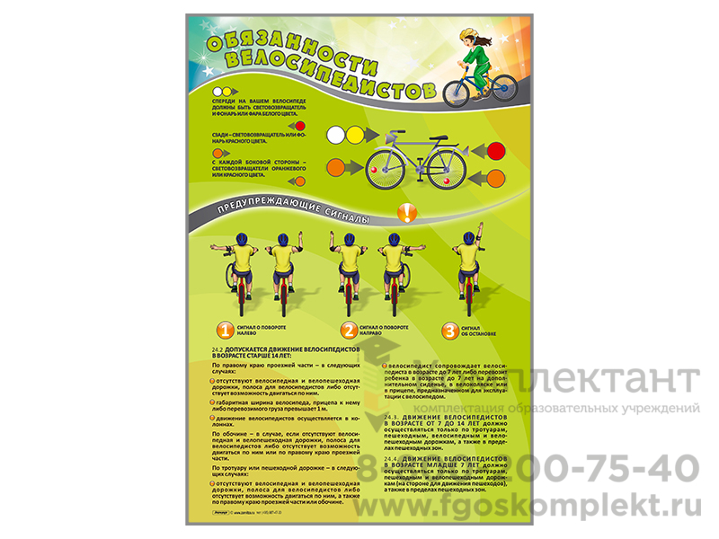 Стенды представляют собой информационные панели, на которых размещены правила дорожного движения для велосипедистов и их обязанности.