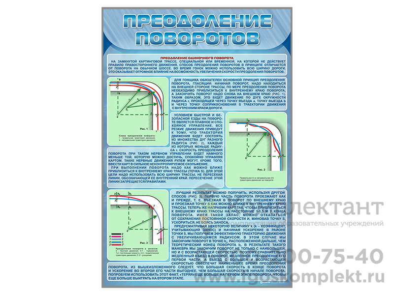 Стенды предназначены для ознакомления обучающихся со схемами одиночных и двойных поворотов на трассе, правилами их преодоления, а также для формирования осознанного отношения к занятиям картингом.