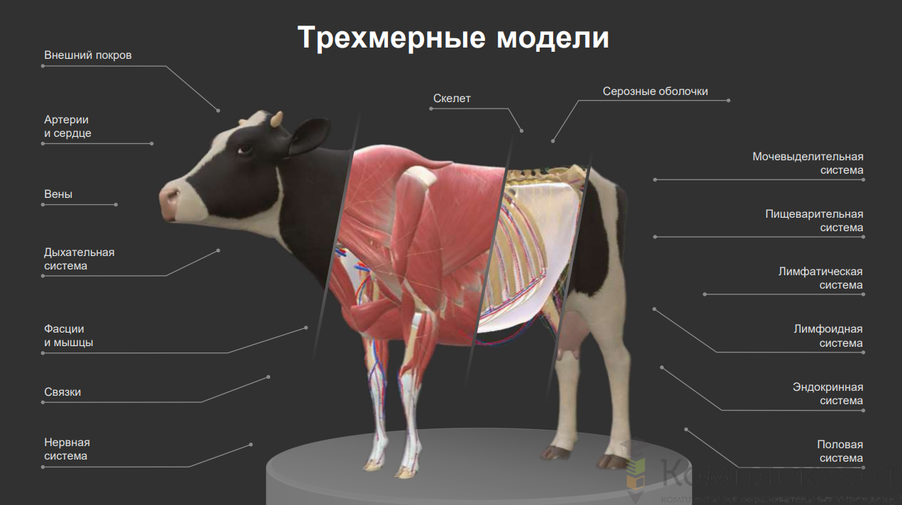 Интерактивный ветеринарный 3D атлас – это инновационное учебное пособие для изучения анатомии животного, ветеринарной медицины и зоологии в профильных учебных заведениях.