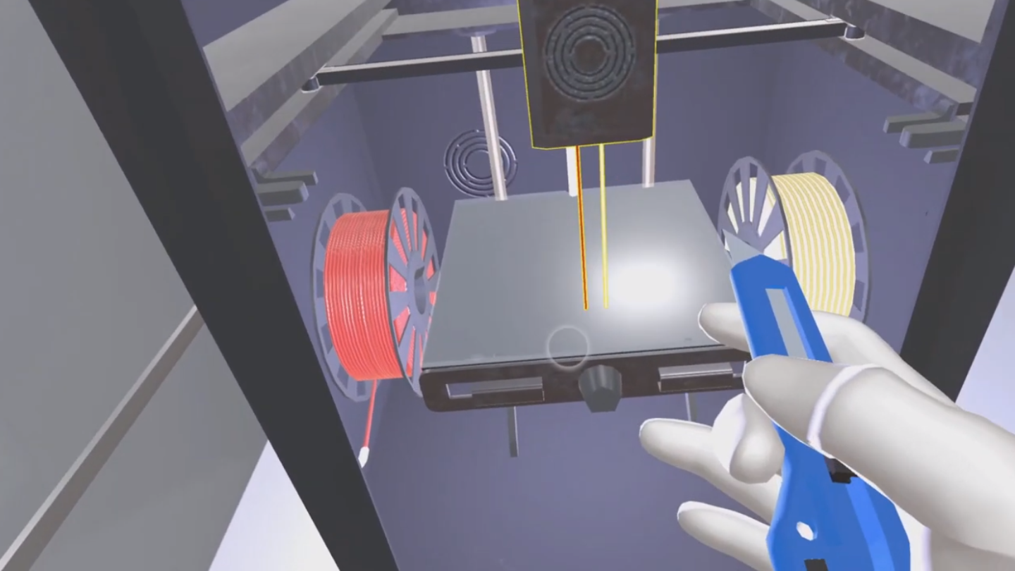 Тренажер воссоздает ситуацию работы с малым FDM и большим промышленным SLS 3D-принтерами. VR-тренажер позволяет пользователю проходить симуляцию с целью обучения ключевым навыкам, которыми должен обладать специалист по аддитивным технологиям.